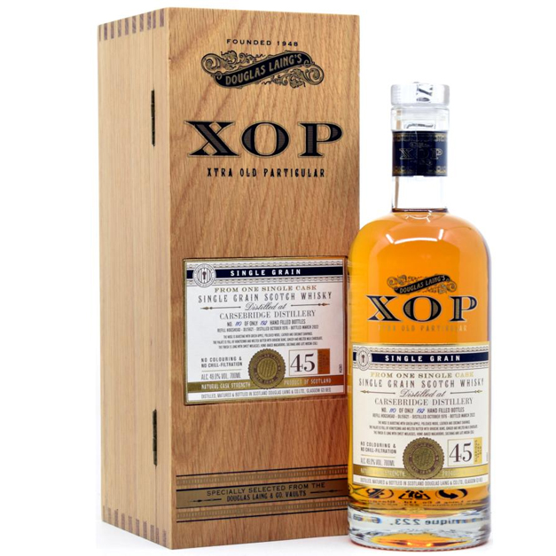 This 45-year-old single grain whisky, distilled, comes from Scotland’s Carsebridge grain distillery in October 1976, matured in a Refill Hogshead and bottled to just 192 bottles in March 2022 in Douglas Laing’s exclusive XOP range.