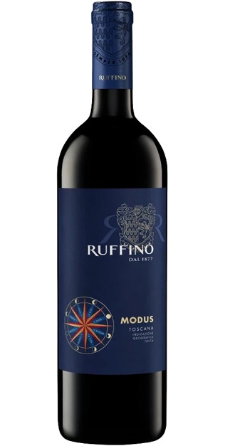 The Super Tuscan Modus, the Latin word for ‘method’, is Ruffino’s contemporary way of expressing Tuscany with a blend of three noble grape varieties. First introduced in 1997, Modus routinely garners exceptional acclaim from the top wine critics worldwide. Sangiovese is the core of Modus, providing refined texture along with cherry and red berry aromas. The Merlot offers smoothness enriched by blackberry fruit and delicate notes of mint, while the Cabernet Sauvignon lends structure, and also unites all three grape types with its elegance. Modus’ label features a compass that artfully represents the meticulous balance of all the elements that come together to give this wine its distinctive character: vines, sun, fruit, soil, dedication and the passage of time.